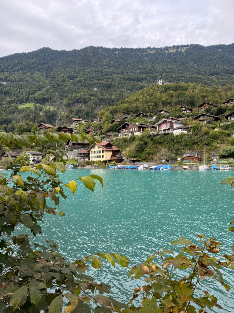 We actually stayed in an Airbnb in Riggenberg BE, where we had beautiful views of lake Brienzersee right outside the living room window. After checking into our stay, we decided to walk to the Aldi for groceries and hiking snacks for the next few days (we did not rent a car and relied solely on public transportation). This easy walk took us right along the lake and through what looked like a small farming town. We got to shop a little before we grabbed our groceries and walked back to our Airbnb. We spent the evening walking through the streets of Riggenberg, checking out different shops and restaurants.